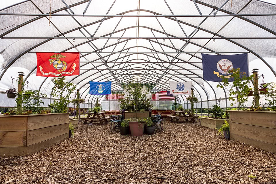 The Victory Garden supported by Farm Credit Mid-America acts as an oasis where to relax and talk about their experiences; helping to alleviate symptoms of post-traumatic stress disorder.
