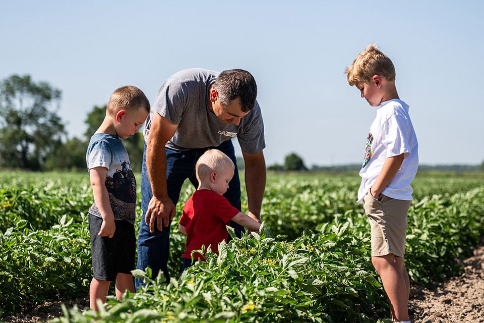 Since their father handed over a 1,500-acre operation, they have doubled its size. Today, Jay and Wade cultivate over 3,000 acres of corn, soybeans and wheat, alongside a specialized 265-acre tomato processing operation.